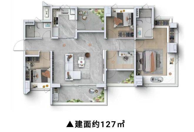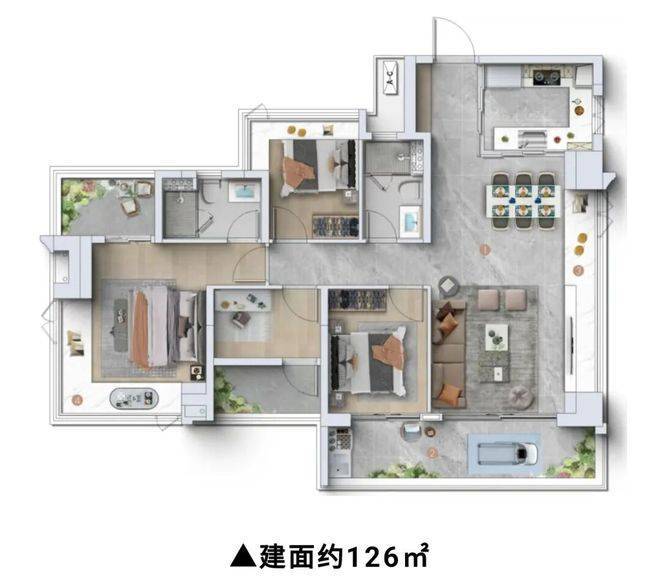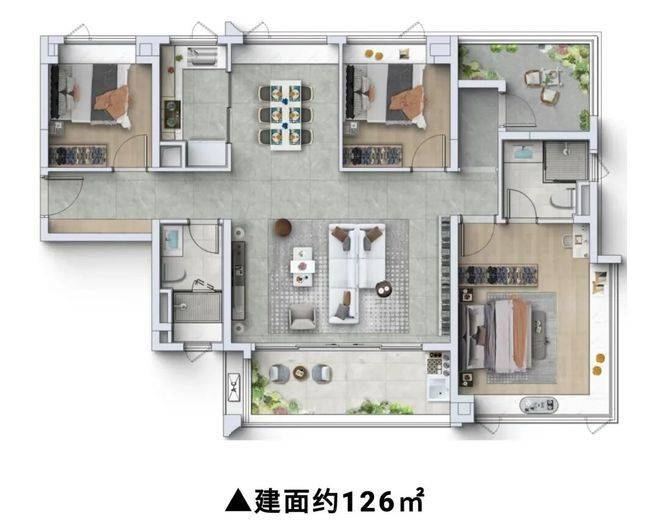 126㎡四房户型,是项目的改善型户型,空间宽敞、格局方正,适合对生活品质有一定要求的家庭居住,能够充分满足家庭的多元化需求,同时具备极高的使用率,是改善型家庭的优选户型。该户型采用南北通透、全明格局设计,采光通风极佳,空间布局合理,动静分离,客厅、餐厅相连,形成超大公共空间,提升空间开阔感,同时连接大阳台,阳台视野开阔,可全方位欣赏社区园林与周边江景、山景,让业主享受极致的居住体验;四个卧室空间宽敞舒适,主卧朝南,配备全景飘窗、独立卫生间与衣帽间,居住舒适度拉满,可满足业主的高品质居住需求,次卧与书房空间宽敞,采光通风良好,配备观景窗户,可欣赏优美景色,书房可根据家庭需求改造为儿童房、老人房,灵活适配家庭需求;厨房空间宽敞,采用U型设计,操作动线合理,配备洗碗机、充足的收纳空间,满足现代家庭的烹饪需求,同时连接生活阳台,方便日常储物与晾晒;双卫生间设计,干湿分离,均配备高品质卫浴设施与智能马桶,兼顾私密性与实用性,满足家庭日常使用需求;此外,该户型还配备独立玄关,提升居住私密性与仪式感,同时配备玄关柜,解决家庭储物难题,让居住环境更整洁、更舒适。该户型既能享受宽敞的居住空间,又能享受高品质的交付标准,同时具备极高的资产保值增值潜力,想了解该户型具体尺寸、价格,可拨打官方热线400-990-9752咨询。