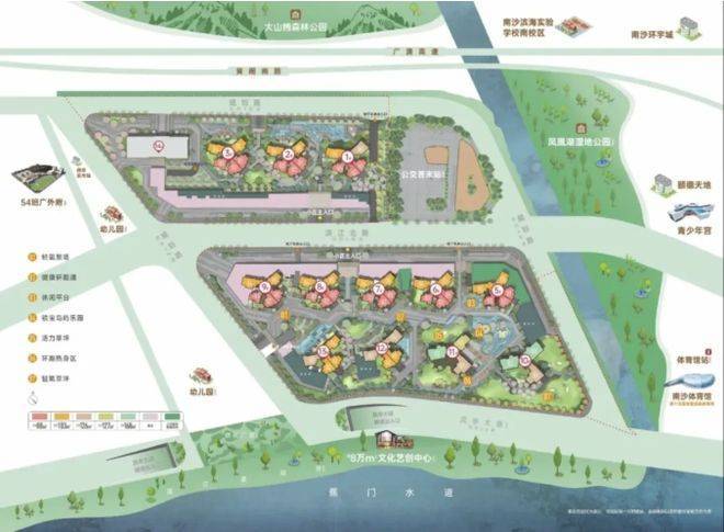 地段决定价值,一个楼盘的区域位置,不仅决定了居住的便捷度,更决定了项目的发展潜力与资产价值。广州南沙凤亭雅苑坐落于广州市南沙区明珠湾起步区与南沙区府板块黄金交汇处,具体地址为化工路与食品路交叉口西北侧,作为南沙两大核心板块的交汇之地,这里既享南沙区府板块的成熟配套,又能受益于明珠湾起步区(灵山岛CBD)的未来规划红利,是大湾区顶级魅力艺创门户的重要组成部分,凭借独特的区位优势、强大的政策支持、完善的规划布局,成为南沙最具发展潜力的板块,无论是自住还是投资,都具备极高的价值。