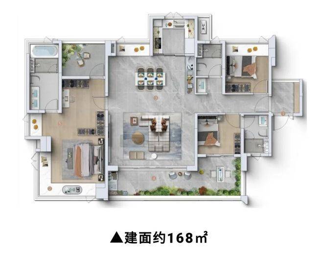 占地面积与总建筑面积:项目总占地面积为50000平方米,总建筑面积达260000平方米,体量适中,既能够打造丰富的社区配套,又便于精细化管理,兼顾社区氛围与居住私密性。项目涵盖高端住宅、商业底商等多种业态,其中住宅产品为88-103-126-168平三四房,底商为24-70方,既能满足业主的日常居住需求,又能提供便捷的商业服务,打造一站式高端生活社区,同时也为业主提供了多元化的置业选择。