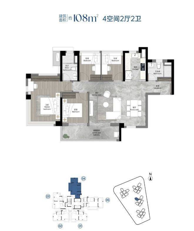 项目规划 4 栋住宅,大概率采用蝶式布局。户型为建面约 88 - 120㎡三至四房,新规后的户型设计独具匠心,阳台占比可达到套内面积的 20%,在海珠西板块使用率领先。极高的赠送率让空间尺度感十足,88 方三房相当于旧规 110 方,108 方、120 方四房约等于旧规 120 - 140 方户型。88 方户型做到 3 房 2 卫,四开间朝南,入户花园、飘窗等赠送空间合理利用,提升居住舒适度。108㎡横厅户型,阳台开间 5.95 米,公区气派。122㎡户型客餐厅南北对流,形成 LDKB 一体化 + 超大生活剧场,主卧 270° 飘窗,空间布局合理。各户型赠送空间达到极致,是地铁 11 号线上首个有望达到 120% 使用率的项目。