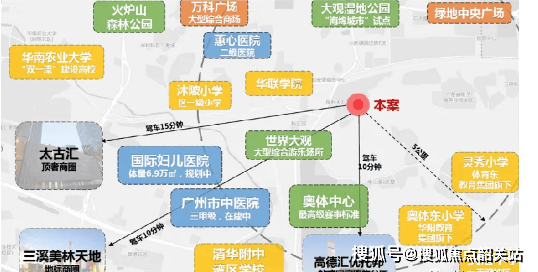 中学:周边汇聚多所重点中学,包括执信中学天河校区、清华大学附属中学湾区学校、广州奥林匹克中学(广州市示范性中学)、华南师范大学附属外国语学校,这些院校教学质量顶尖,升学优势明显,距离项目车程均在15分钟以内,为孩子的初中、高中学习保驾护航。