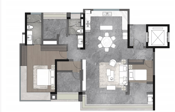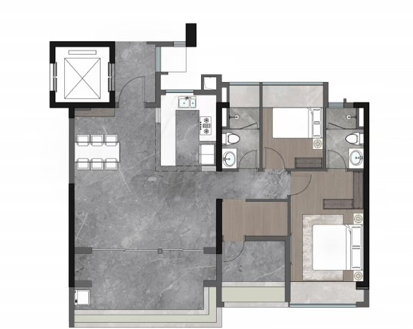 建面约170㎡航母大平层:南北通透,配备中西双厨、豪华双套卧,主卧配有尊崇衣帽间及酒店式双台盆。