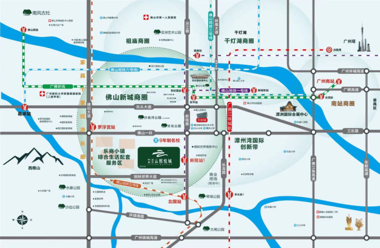 中建顺控·云熙悦城选址佛山落位主城顺德乐从乐商小镇核心区 ,项目毗邻佛山的城市中心佛山新城 ,千亿繁华配套,触手可及。