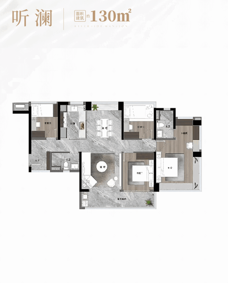 3. 185㎡四房三卫:高净值人群的“江景头等舱”