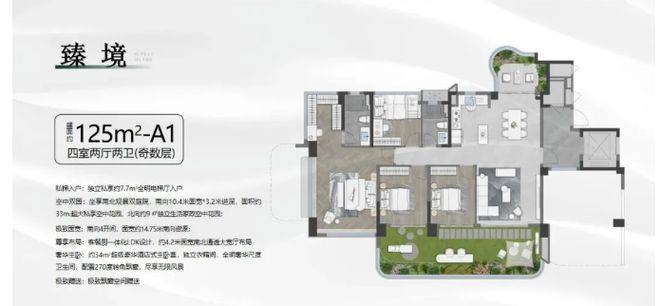 户型设计亮点满满。主力户型 82㎡ - 125㎡的三至四房,户型方正,空间利用率高。部分户型有独立玄关和动静分离设计,主卧带空中花园,居住舒适度高。像 110㎡户型实际使用面积可达 153㎡,得益于 25% 阳台占比和 40% 户属空中花园设计,部分户型赠送面积不计入产权,实际使用空间大幅增加,满足不同家庭需求。