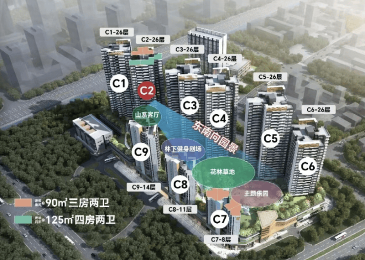 🏡 户型设计:90-156㎡三至五房,得房率超85%