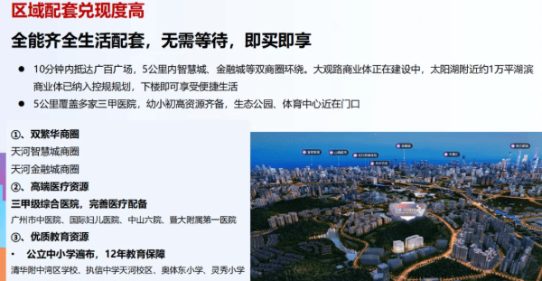 教育资源优势突出:片区内汇聚清华附中湾区学校、执信中学天河校区、广州奥林匹克中学(市示范性高中)、奥体东小学,以及贝赛斯、爱莎等国际名校,形成从幼儿园到高中的全龄段优质教育矩阵。