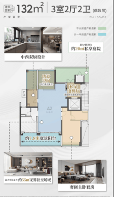 中交蔚蓝海岸本次加推5#、6#头排藏品,涵盖建面约132㎡三房、164㎡四房、169㎡边厅大平层三大主力户型,以四代空中院设计理念,打造高实用率、高舒适度、高景观度的改善户型。建面约132㎡革新三房为城市菁英家庭量身定制,纯板式南向布局,三开间朝阳保障充足采光;最大可拓展约20㎡私享庭院,实现室内外空间无缝衔接;约7.8米南向宽景阳台延伸景观视野,LDKB一体化打造约55㎡阔绰社交厅,空间灵动多变,兼顾实用性与舒适度。专梯专户设计赋予独立电梯厅,兼具归家仪式感与收纳功能,厨房可开可合适配不同生活需求,三大卧室尺度舒适,完美平衡家庭居住与社交需求。该户型以超高实用率与灵动空间设计,成为片区改善户型标杆,满足菁英家庭全周期居住需求。