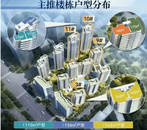 越秀·大学城和樾府总占地面积7万平方米,建筑面积近30万平方米,共有24栋建筑,提供872户住宅单位。项目主打低密度板式设计,层数控制在16至24层之间,专梯独户的设计增加了私密性与舒适度。在售户型多样,从四房到五房不等,满足不同家庭的需求。