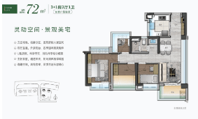 在售户型:一期 72 - 104㎡、二期 110 - 143㎡