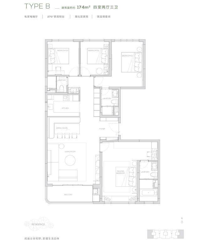 户型设计以舒适与品质为核心。所有楼栋为 16 - 17 层纯板式小高层,专梯专户,保证居住的低密舒适。虽不是新规后的产品,但户型设计注重空间利用与居住体验。如 168㎡四叶草户型,四室两厅三卫,搭配【M + 科技系统】,从空气、饮水、环境等核心要素出发,采用优质材料与工艺,满足现代智慧社区与智能生活需求,为业主打造绿色健康的居住空间。