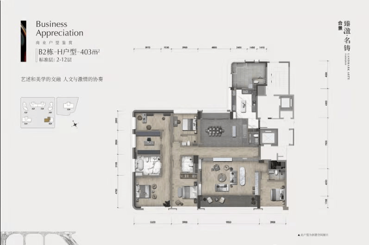 四、户型:多面朝南一线江景,280~403㎡全能空间布局