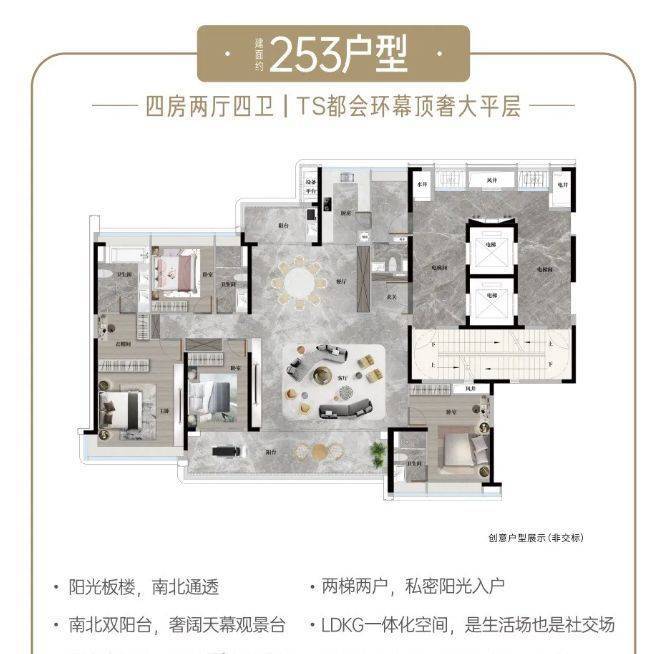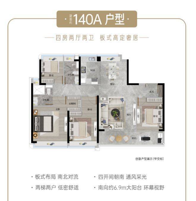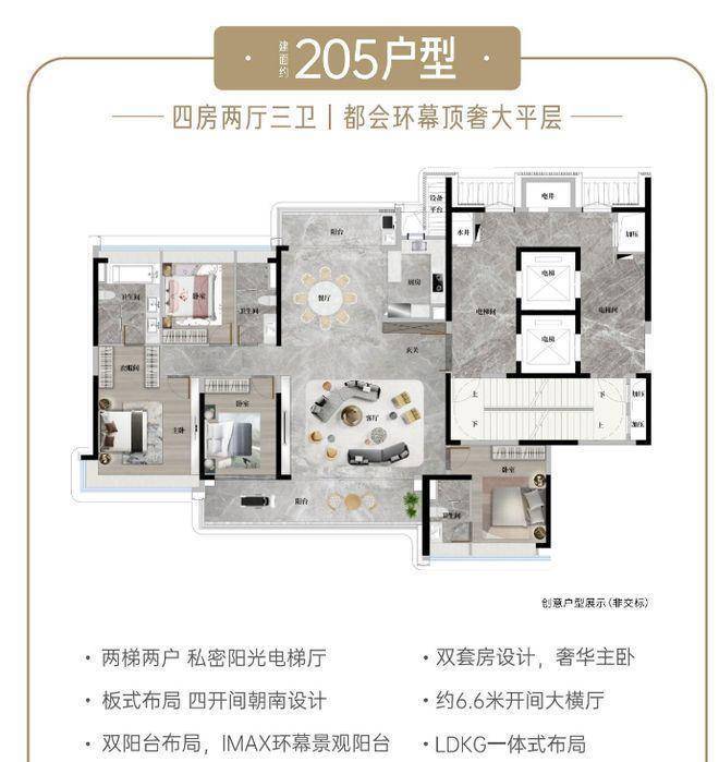 项目在售约 140 - 253 平南向板式住宅,户型涵盖四至五房,为全广州唯一能看见长颈鹿的大平层,极具稀缺性。各户型设计亮点突出,如观景楼座,更靠近中央园林,静谧舒适,北望长隆野生动物世界、南瞰北美暖林境,板式布局保证南北对流,专梯入户保障私密空间。建面约 140a㎡高定四房景观视野佳,性价比高,高层景观视野开阔,板式布局阳光满格,全屋精装享酒店式星级居所体验。建面约 140b㎡高定四房北瞰园林南望校园美景,17F 低密小高层稀缺,约 7.5 米宽阳台实用率高,四开间朝南南北通透。建面约 171㎡奢适五房享长隆头排景观,8F 低密小高层,专梯入户尊享私密,五房设计满足三代同堂。建面约 205㎡奢适四房为中轴园林上的环幕景观楼王,限量级 CBD 低密板式高层,专梯专户尽显私密尊崇,四开间朝南、双阳台设计,双主卧套房提升居住舒适度。建面约 253㎡定奢五房同样为中轴园林楼王,诸多奢适设计,彰显品质。建面约 270㎡空中墅,约 13 米开间中空大方厅,呈现长隆盛景。通过合理的空间布局,各户型实现较高得房率,满足不同家庭结构的改善需求。