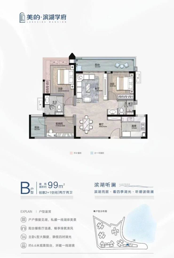 头排湖景:95%户型可观湖,最大楼间距超100米;