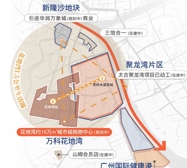 A4: 项目距离已开通运营的地铁1号线“花地湾站”约800米,步行时间约10-12分钟。通过地铁1号线,1站可到芳村站换乘在建的11号线(广州大环线)和22号线(高速地铁),未来轨道交通出行将非常便捷。项目所在的花地湾片区也是重要的TOD规划区。