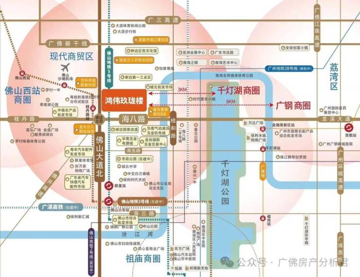 4、立体交通路网:佛山大道、桂丹路5分钟可达广州及禅桂核心,1分钟上沈海高速可无阻畅行广佛,佛山地铁3号线、5号线、广州28号环线临经;