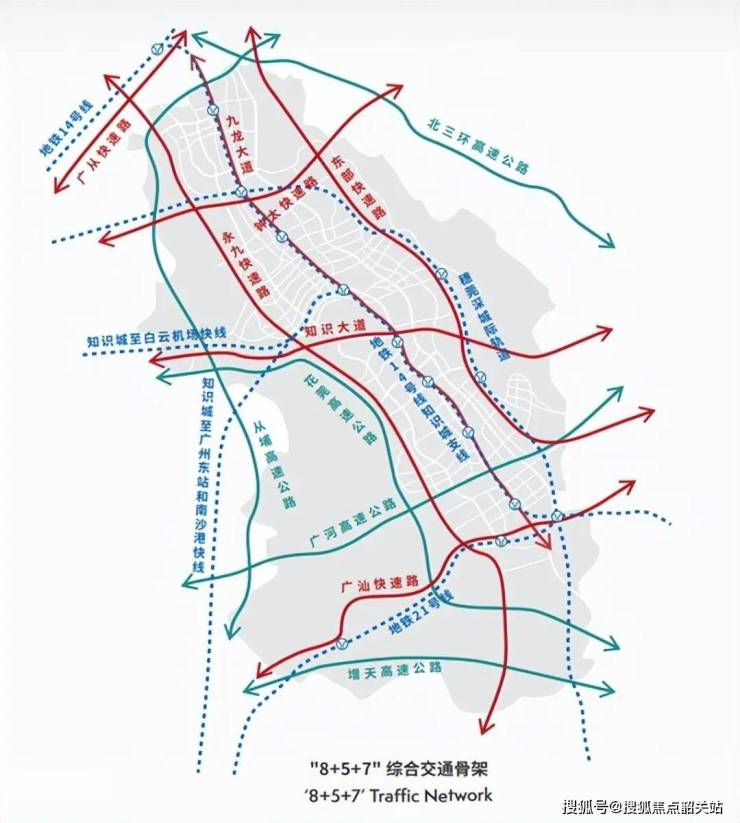 广河高速、北三环高速、从埔高速、增天高速等五条高速路网交织,形成“三横四纵”立体交通体系。