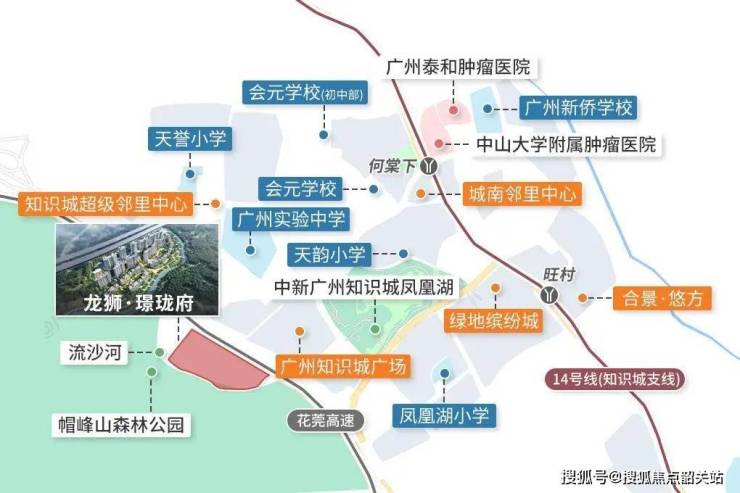 地铁:距离地铁14号线何棠下站约2公里,通过社区接驳车或骑行电动车可快速抵达;规划中的穗莞深城际铁路知识城支线将于2026年通车,设“知识城站”,3站直达广州东站。