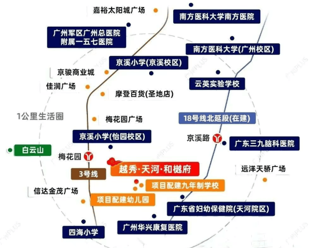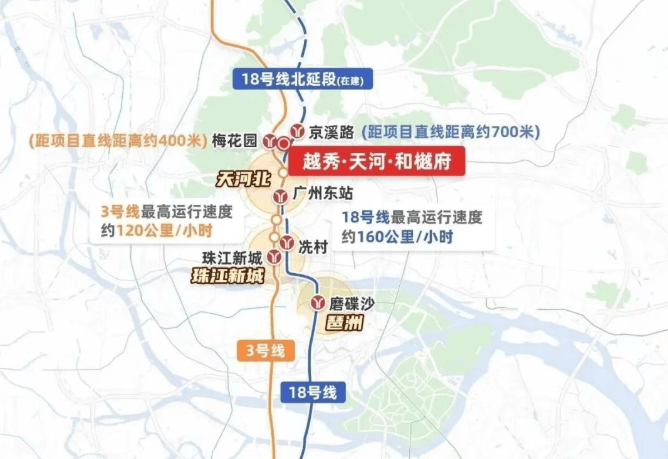 项目距离地铁3号线梅花园站直线距离仅400米左右,步行约800米即可到达。未来还有18号线北延段京溪路站的加持,进一步提升了出行的便利性。自驾出行也十分便捷,周边有广州大道北和沈海高速等重要线路可供选择。