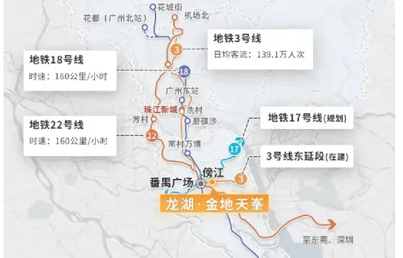 答:3 号线东延段傍江站已开通,小区电梯可直达地铁站,1 站到番禺广场换乘,2 站即可直达珠江新城,无需换乘,通勤非常便捷。