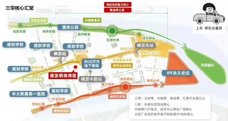 建发明珠湾玺坐落于中国首个国际金融岛——南沙横沥岛的核心中轴区域,三面环水,如岛屿般静卧于珠江口生态水系之间。根据《南沙国际金融岛总体规划(2021-2035年)》,该板块总投资超1000亿元,重点发展跨境金融、绿色金融、金融科技等产业,已落地IFF国际金融论坛永久会址(2026年投入使用),引入中金岭南、中远海运等世界500强企业区域总部,规划引入广州期货交易所、粤港澳湾区国际商业银行等核心金融机构。