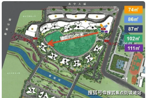🏡 社区参数:项目用地面积约 9.26 万㎡,总建筑面积约 45.52 万㎡,规划总户数 3145 户,车位数 3085 个,车位比 1:1.2,绿化率 26%,容积率 3.5,物业费 2.8 元 /㎡/ 月。项目分两个地块开发,由 15 栋住宅组成,采用围合式布局,最大楼间距超 200 米,中央园林抬高 5 米设计,同时独创 “工字形” 塔楼并扭转 15°,最大化提升采光与通透性,社区规划远超同区域刚需项目。