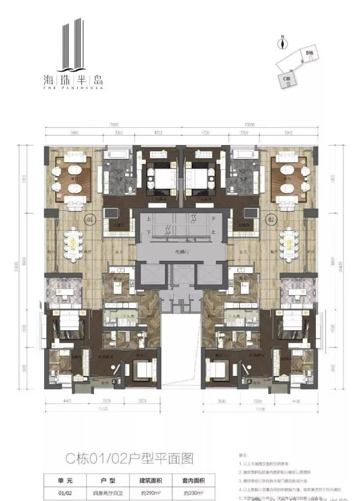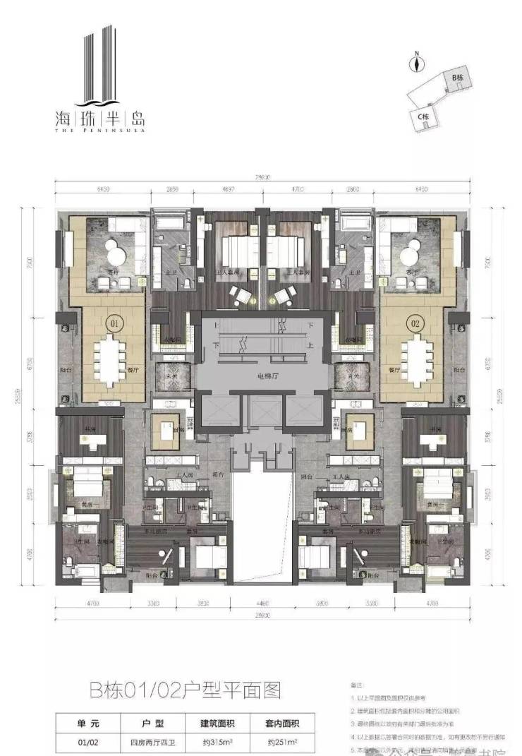 楼栋构成:B、C两栋超高层住宅,均为43层