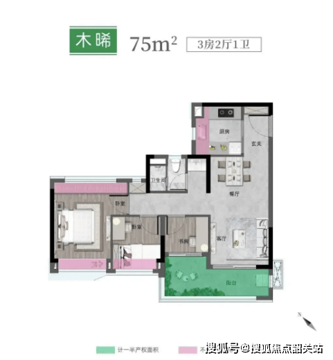 A:75㎡三房得房率 95%,实际使用面积约 71㎡,户型设计紧凑实用,四开间朝南保障采光,约 5.2 米大阳台提升空间延展性,主卧与次卧面积适中(主卧约 12㎡,次卧约 9㎡),书房 / 儿童房虽面积较小(约 6㎡),但可通过定制家具(如榻榻米)提升利用率,整体空间足以满足刚需三口之家日常居住,不会显得拥挤,是科学城板块稀缺的小面积上车户型。