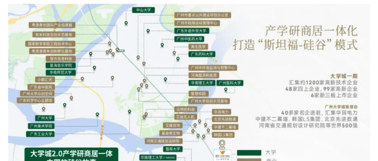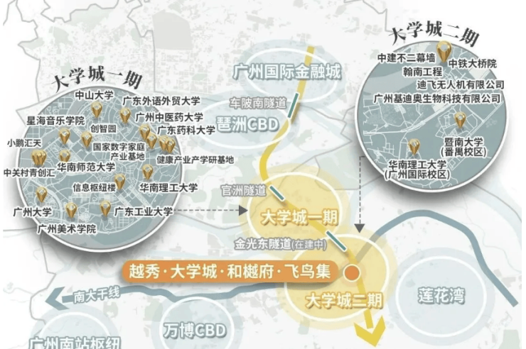 核心卖点一:核心板块占位,产业教育双赋能,潜力无限 越秀·大学城和樾府坐落于番禺大学城二期-国际创新城核心板块,该板块又称大学城2.0版本,规划总面积达十平方公里,形成“一核两翼”空间结构,北翼为生物岛、核心为大学城、南翼为南岸起步区等区域。板块内规划有大学智慧谷一至三期、产业孵化基地、广州大学城科技创新产业园等多重产业配套,同时汇聚暨南大学、广州医学院等高校资源,广东8所双一流大学中有6所环绕周边,高知人文氛围浓厚,产业与教育双赋能,未来发展潜力巨大,是番禺极具价值的置业板块。