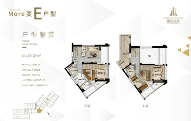 朗信国际主打4.5米挑高的复式公寓产品,提供多种户型选择,包括约30平方米的两房、约40-75平方米的四至五房。所有户型均配备明火独立厨房和外阳台,双层空间设计让住户能够灵活利用每一寸面积,实现家庭与事业的双重兼顾。特别值得一提的是,项目户型的使用率极高,即使是小面积的户型也能满足都市精致生活的多样化需求。例如,30平方米的两房设计紧凑合理,49平方米的四房则提供了更多的居住可能性,适合不同类型的购房需求。