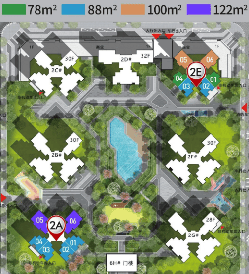 🌳 园林景观:打造“一轴两环三庭”景观体系,涵盖中央泳池、全龄健身区、儿童乐园等,绿化率超35%;