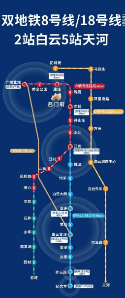 🚇花都区·中旅名门府 位于广州北站新城核心区,毗邻空港经济圈,是广佛同城化战略的重要节点。区域规划为“产城融合示范区”,未来将打造集商业、教育、居住于一体的综合新城。项目周边3公里内规划有地铁18号线北延段(预计2026年通车)、广花快速路等交通动脉,15分钟直达白云机场,30分钟通达珠江新城,区域发展潜力巨大。