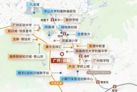 广开云翰的最大亮点之一便是其优越的教育资源。项目一路之隔即为华附知识城校区,直线距离仅100米,该校为黄埔区迄今为止投资规模最大、技术标准最高的学校,并已于2023年开始招生。初中部采取自主招生+全区摇号的方式,为业主子女提供了优质的教育机会。此外,项目周边还有华附知识城小学、广东外语外贸大学知识城实验小学、凤凰湖小学、广州实验中学&小学、新侨中学等多所学校,形成了完善的教育网络。