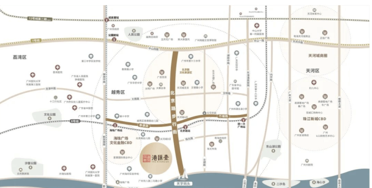 港汇台周边生活配套完善,步行即可到达地标性景区北京路步行街及天字码头,体验岭南文化和广州历史风貌。住宅自带1.2万平方米的同庆坊商业,结合骑楼、满洲窗等岭南建筑元素,提供餐饮、购物、娱乐及文化活动场所,实现居住与商业无缝衔接。教育资源方面,项目几百米范围内覆盖江畔雅苑幼儿园、八旗二马路小学,对口中小学包括广州海印实验中学、第十中学、广州市第三中学及执信中学,为孩子提供多层次教育选择。医疗配套方面,2公里范围内拥有广东省中医院、广州医科大学附属第一医院和红十字会医院,保障家庭健康。生活便利性高,购物、娱乐、文化、教育、医疗资源集中,业主能够享受从日常生活到休闲娱乐的完整生活闭环,真正实现城市中心宜居体验。