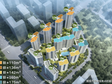 项目占地面积约5万平方米,总建筑面积18.17万平方米,容积率3.6,绿化率33%,车位配比1:1.1(规划1788个车位)。社区采用点状式分布,外立面采用大量玻璃幕墙形式,打造公建化立面,外观现代美观。小区规划有六重归家动线,主题架空层全配建,双入户大堂,还打造了“一步一景,一景即一园”的生态社区,居住舒适度较高。