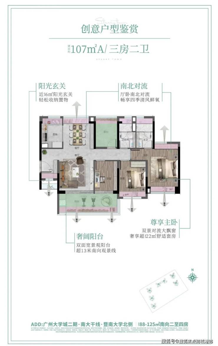 项目位于番禺区大学城二期暨南大学北侧,直通南大干线(全程无红绿灯),串联万博CBD、广州南站商务区;金光东隧道(距项目900米)打通大学城一江两岸,新化快速路17.6公里直达琶洲,14.8公里直达金融城。地铁4号线新造站(距项目1公里)1站到大学城南,4站琶洲,5站金融城。