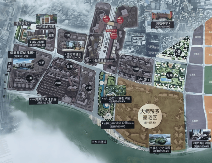 交通配套堪称亮点,广佛线澜石站距离九期组团约 900 米,部分组团更近,搭乘地铁可快速通达佛山新城、祖庙商圈,甚至直达广州南站,广佛通勤族通勤效率大大提升。
