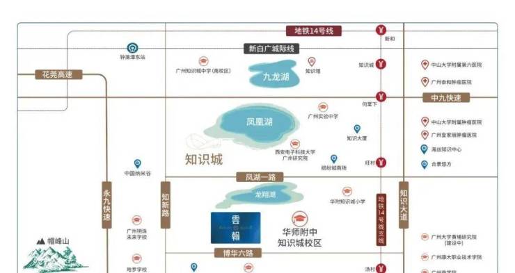 广开·云翰落子于被誉为“湾顶明珠”的中新广州知识城核心区域。经过14年的高水平开发,知识城已从一片阡陌农田崛起为一座产城融合的国际化新城,形成了三大千亿级产业集群,汇聚了全球高端人才,区域价值腾飞在即。项目周边交通网络发达,构建了“8+7+7”的立体化交通体系。虽然距离最近的地铁14号线支线汤村站直线距离约1.5公里,日常通勤需借助短途接驳,但项目在自驾出行方面优势显著。通过九龙大道、创新大道、永九快速等主干道,可快速连接白云、天河等中心城区,驾车前往科学城也十分便捷。此外,项目周边环绕多个高速出入口,轻松接入广州外向交通网络。这种以高效自驾为主、公交接驳为辅的出行方式,精准契合了知识城高素质人群的通勤与生活需求。