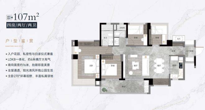 改善主流版户型:大面宽、双阳台、多套房设计,适合改善型家庭,居住舒适度拉满。