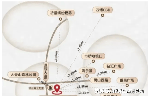 项目坐落于番禺大夫山板块(市桥西片区),西北侧紧邻大夫山森林公园,生态区位优势显著。交通出行以自驾为主,门前禺山西路可快速衔接番禺大道、东新高速与新光快线,10 分钟可达市桥商圈、20 分钟到万博 CBD、30 分钟直达珠江新城,轻松融入广州核心生活圈。公共交通方面,目前距地铁 3 号线市桥站约 5 公里,可通过公交接驳;未来规划地铁 26 号线将途经片区,交通便利性将进一步提升,无论是日常通勤还是周末出游,多维路网基本满足出行需求。