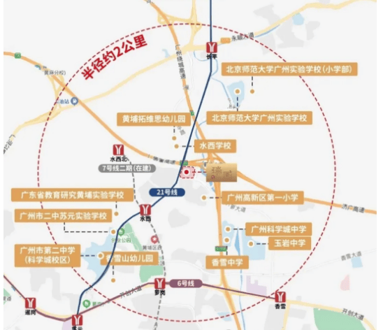 中学方面,项目周边有广州市二中苏元实验学校、北京师范大学广州实验学校、玉岩中学、科学城中学、广东省教育研究院黄埔实验学校等多所知名中学。这些学校教学质量优异,师资力量雄厚,为学生提供了良好的学习环境和成长平台。