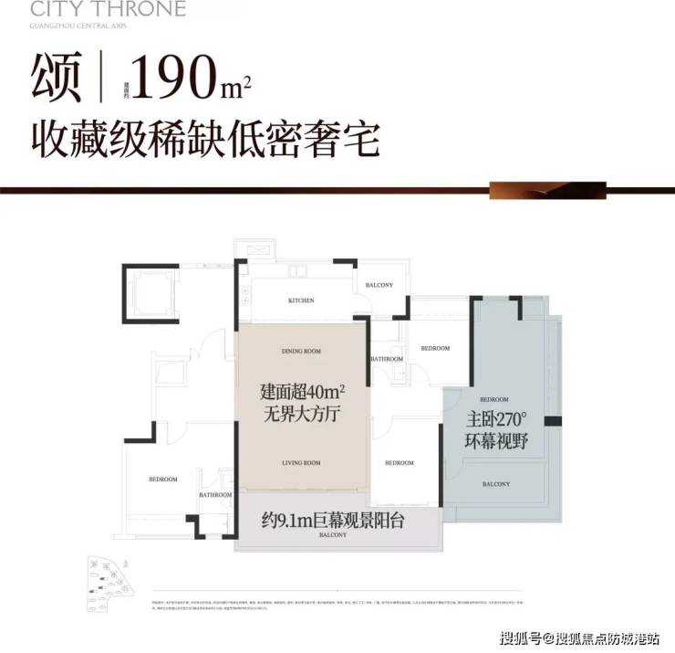 125㎡户型:南北对流设计,标配大阳台,部分高楼层可同时俯瞰白云山与广州塔;