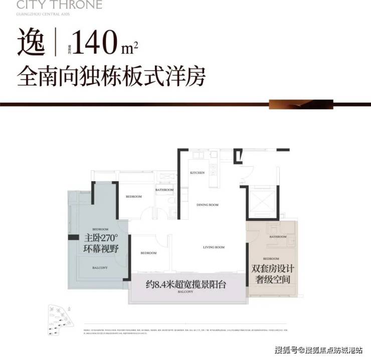 140㎡专梯专户:双主套配置,电梯厅独享约5-6㎡,私密性与实用性兼备;