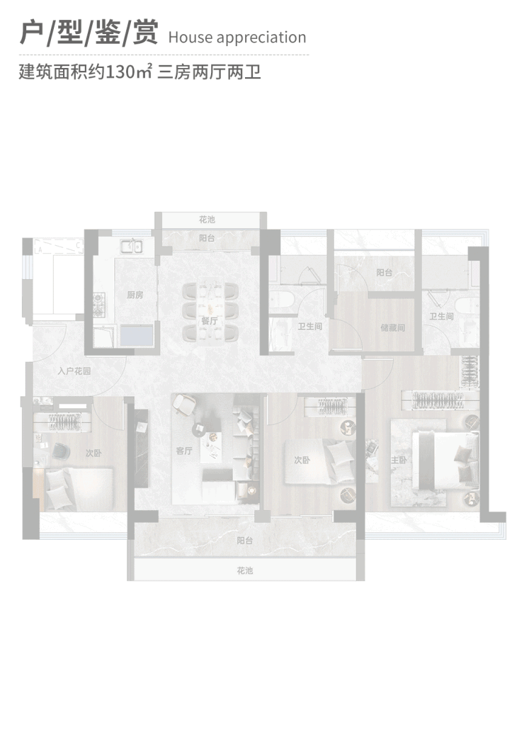 125㎡四房:特价860-920万,南北对流双阳台,主卧套房带独立衣帽间。