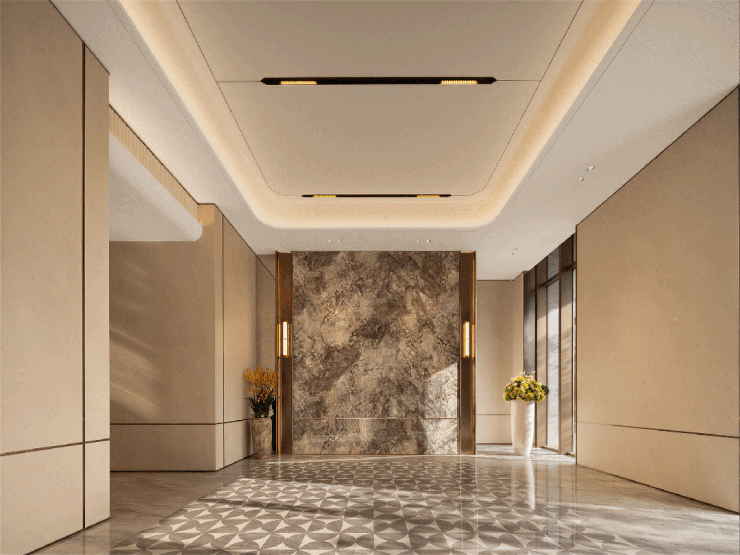 项目建筑规划遵循城市界面和谐原则,楼栋排布采用中轴对称布局,保证每栋楼的采光、通风与景观视野均衡性,T7双景王座位居社区景观中轴,实现城市景观与园林景观双向观景效果。建筑外立面采用极简线条设计,搭配质感石材与金属板材,整体风格简约大气,契合当代人居审美趋势;社区大门采用约66米奢石挑檐设计,搭配7米高石材墙面与定制壁灯,尺度恢弘且细节考究;入户大堂打造5.3米挑高空间,选用岩板、定制瓷砖等材质装修,提升入户空间的质感与舒适度。建筑施工严格遵循佛山“好房子”建设指引要求,层高设计贴合规范标准,户型开窗面积合理规划,兼顾室内采光与外立面整体性;楼栋外墙采用耐久型建材,减少后期维护成本,提升建筑长期保值性。项目已取得合法预售许可,建筑施工进度有序推进,建筑主体与外立面细节逐步呈现,品质把控贯穿建设全过程。