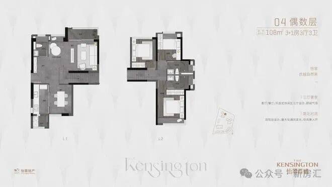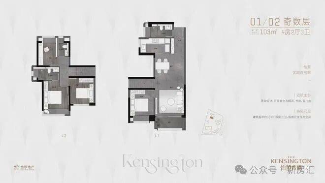 其中,1号和2号楼为47层高层建筑,3号楼为26层,采用3梯4户的设计,确保了充足的采光与私密性。项目总户数396户,其中洋房380户,叠墅16户。户型面积从101㎡到114㎡不等,其中奇数层的户型有103㎡、108㎡、114㎡,偶数层为101㎡、108㎡、113㎡,提供了多种适合不同家庭的户型选择。每个户型的设计均注重空间的高效利用与舒适体验,力求在有限的空间内提供最大的生活舒适度。