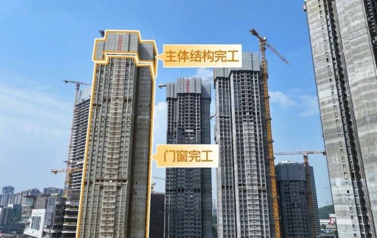 项目部分楼栋已封顶,阅海组团1#、2#、4#计划提前至年底交付,最长提前约240天。工程施工采用穿插施工模式,主体结构、门窗、水电及精装修同步进行,高层及低层均按计划推进,确保按期交付。