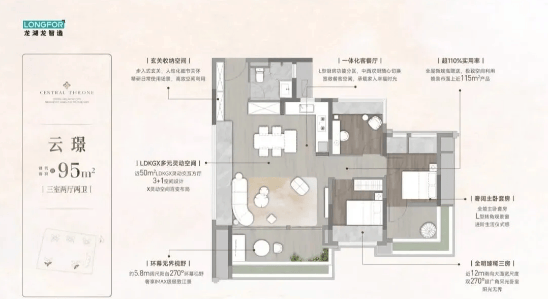 买房时最怕“得房率刺客”,花了100㎡的钱,实际能用的只有80㎡。但在龙湖亚伦央璟颂,完全不用有这个顾虑——全系“零飘窗”设计,交付时就把飘窗打掉,实用率直接冲到110%-130%,相当于买100㎡得130㎡,性价比直接拉满。