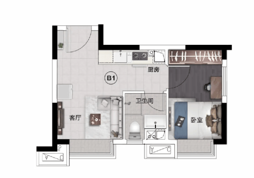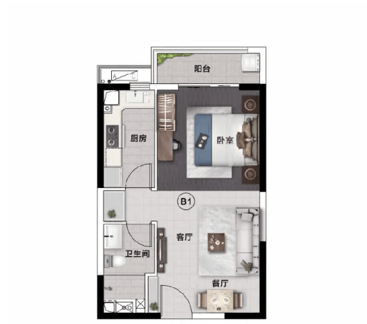 约59㎡一室二厅一卫平层公寓,卧连阳台设计,让自然盛景轻松入室,清晨被阳光和绿意唤醒,傍晚俯瞰社区美景,惬意十足;独立卧室设计,有效隔绝油烟,居住更舒适;独立卫浴实现干湿分离,保持室内整洁干爽,精工品质加持,打造舒适宜居的居住空间。