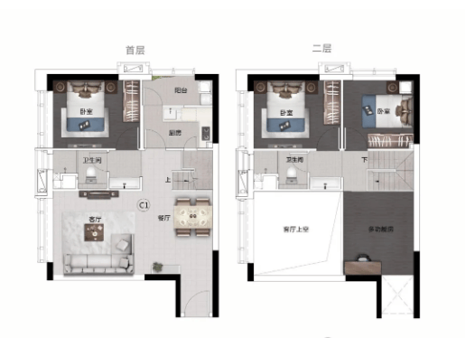 百变LOFT产品主打灵动多变、空间利用率高,户型面积约45-95㎡,其中83.44㎡三室二厅一卫户型,N+1房设计,灵动百变,可根据自身需求改造空间,满足多场景使用需求;4.5m挑空客厅,奢阔大气,彰显品质格调,同时增加空间层次感,让室内空间更显宽敞,无论是自住还是办公,都能完美适配。
